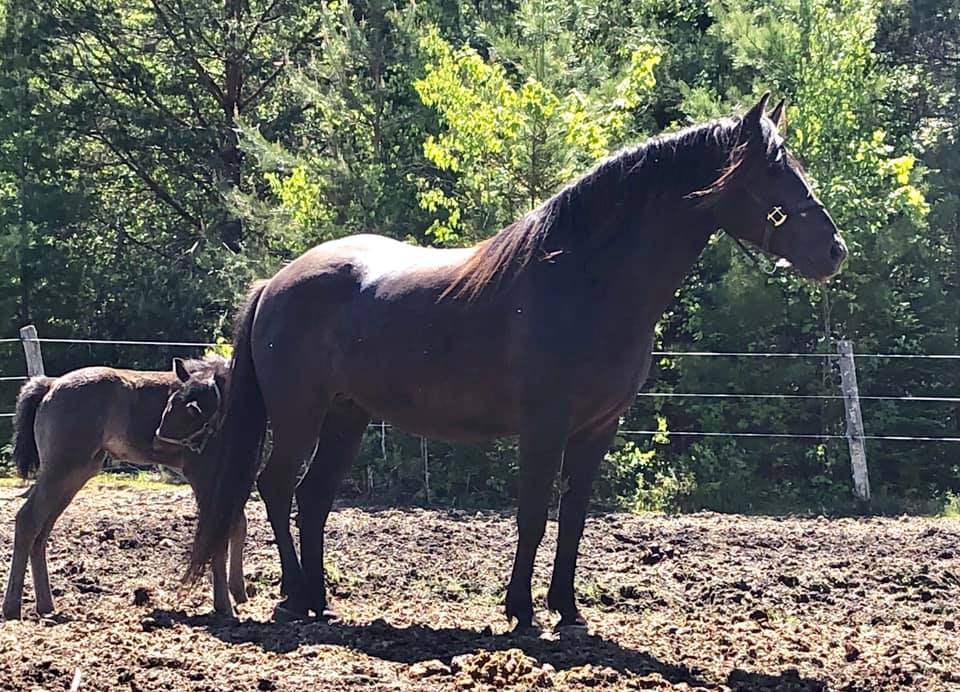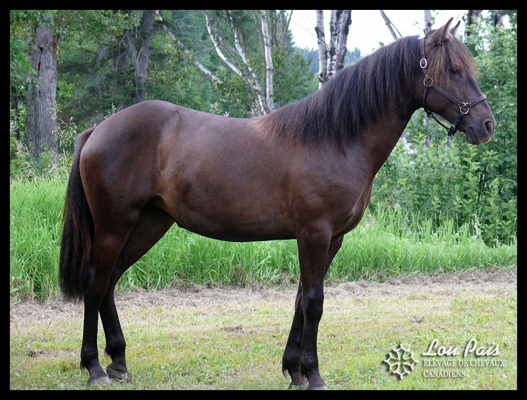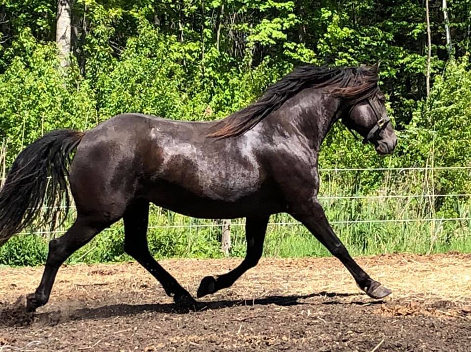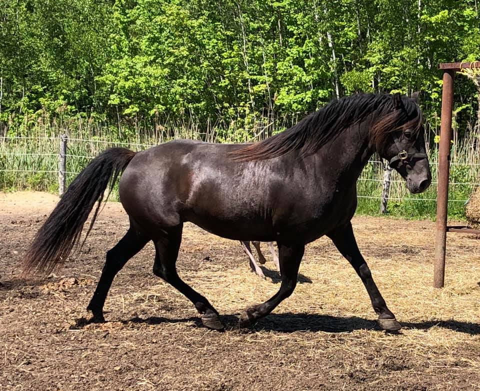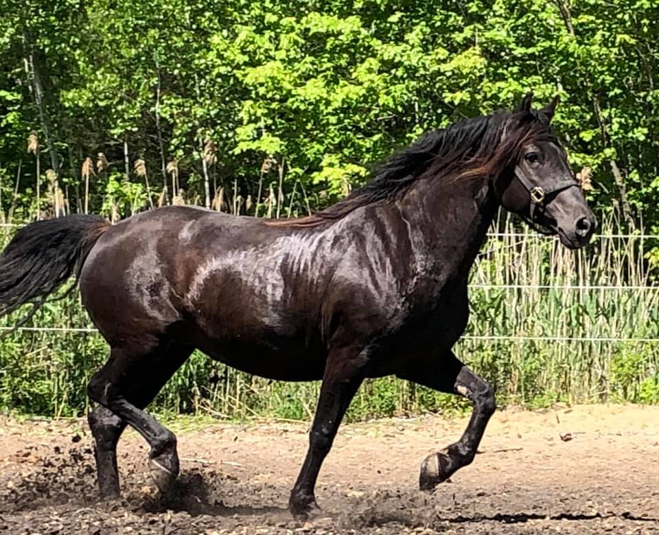 Couleur : Smoky black (Noire porteuse du gène crème) - (EE Cr/n). 50% de chance de transmettre le gène crème à sa descendance (à la base des couleurs palomino, isabelle et smoky black)